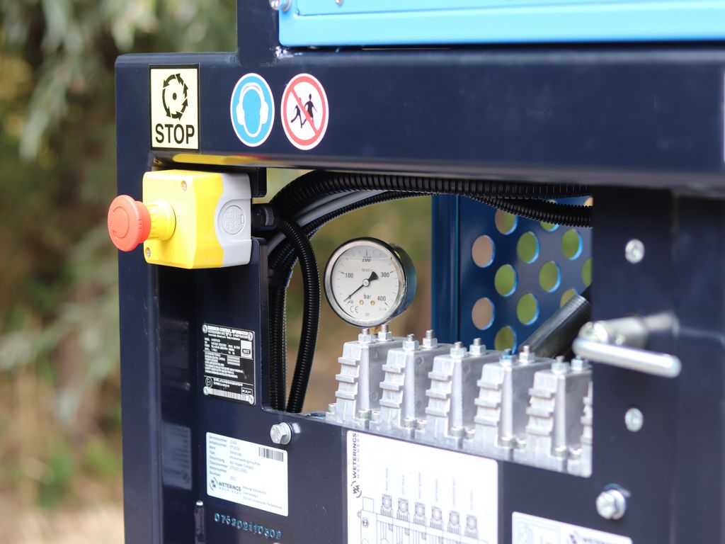 This Bio Hopper is equipped with high quality safety features, whereby the rolling up of the transport mat is fully protected by the WSS system. Combined with the safety doors, emergency stops and double-channel safety circuit, this machine offers the highest level of safety without any loss of efficiency!