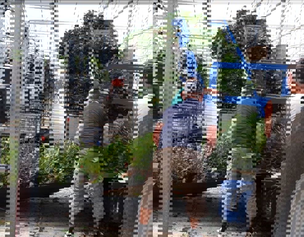 The Bio Hopper EXTF is built for cleaning out large horticultural volumes such as strawberries on coir, or substrates such as coco and perlite, or tomato leaf in greenhouses. This Bio Hopper rolls up the tarps on which the material is pulled to the machine. The material is then picked up by the extra long conveyor belt, which dumps it into a tipping trailer or dumper, allowing large volumes to be removed from the glasshouse clean and simple.