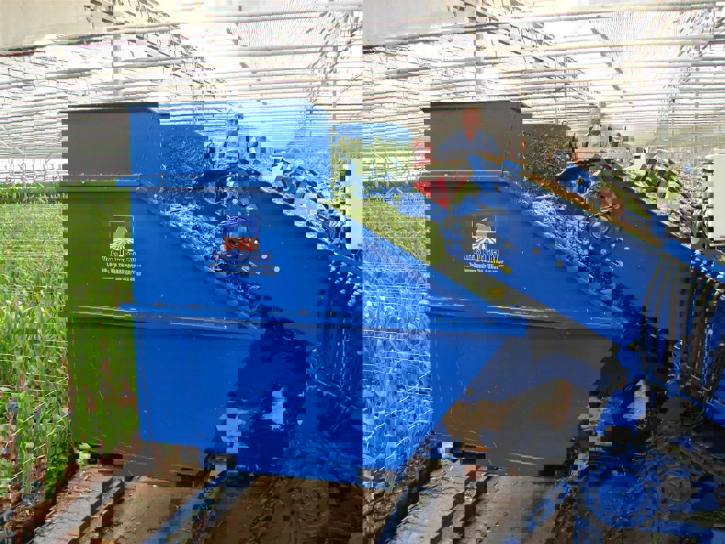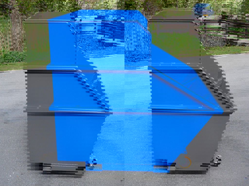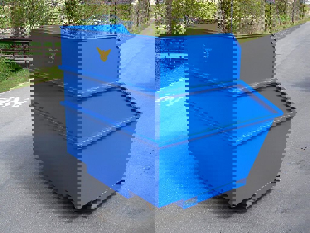 This waste container is suitable for uptake by an amaryllis caterpillar shredder. The waste container is easily connected and disconnected hydraulically, by a locking system on the tracked shredder. The bin is equipped with fork-lift tubes and swivel castors.