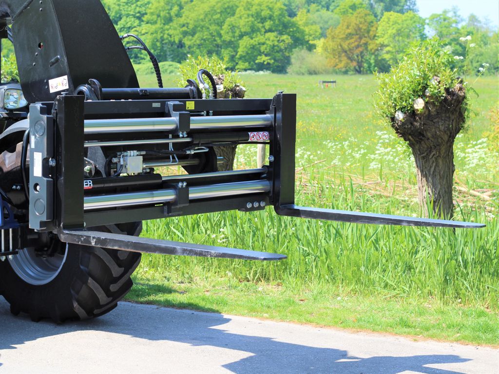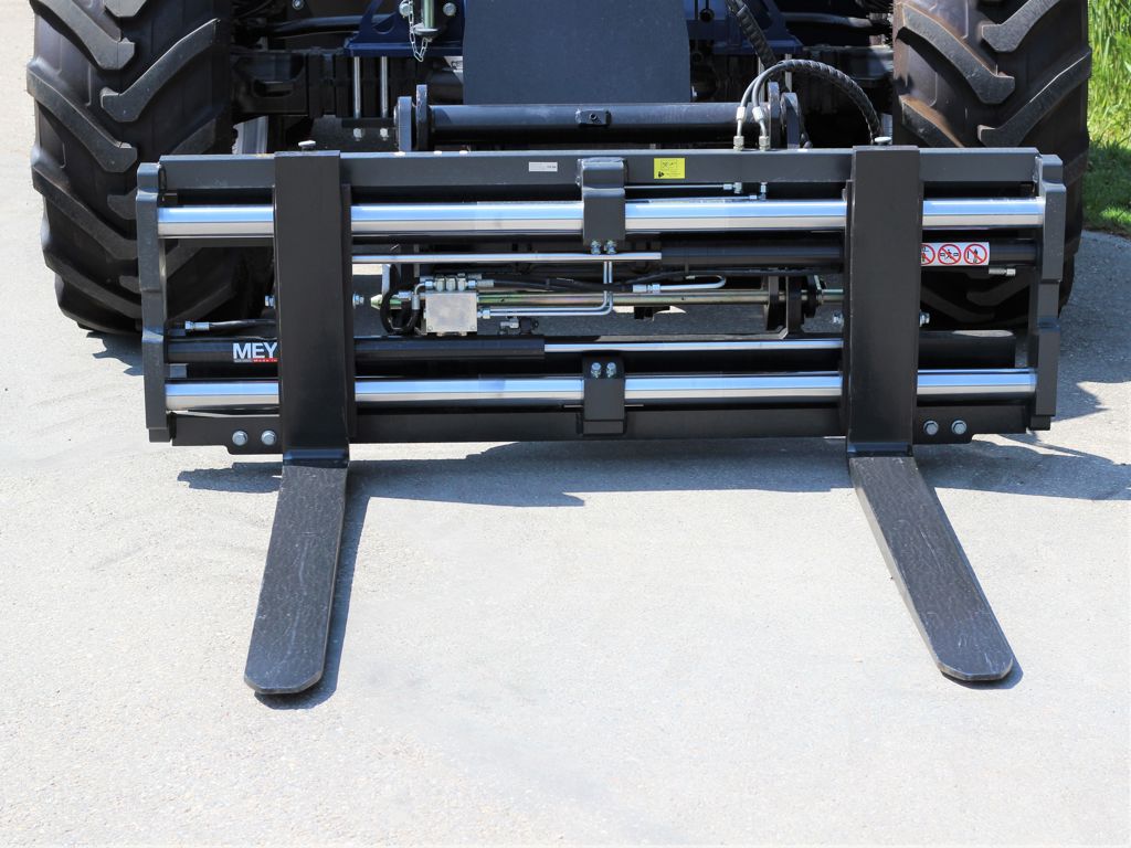 The fork adjuster can hydraulically adjust the forks from the operator's position. As a result, the loads can always be transported with the widest possible distance from the forks, which improves safety. It also saves work because the fork width can now be adjusted at any position of the mast.