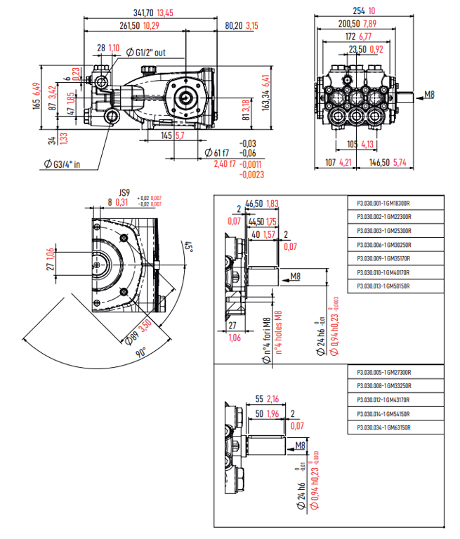 Mazzoni GM63150R Plunger Ø28 Pump 63l/min~150bar