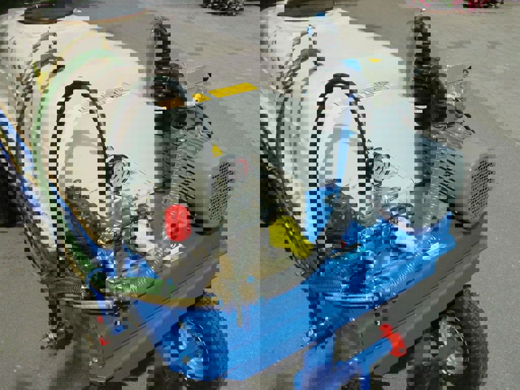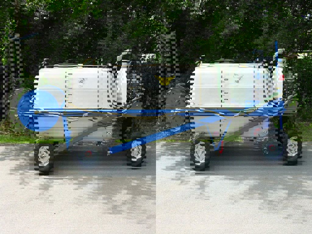 This spray trolley is equipped with a 1000 litre polyester tank, with a directly coupled Imovilli P93 3 cylinder piston pump.