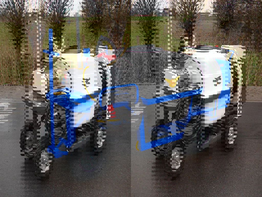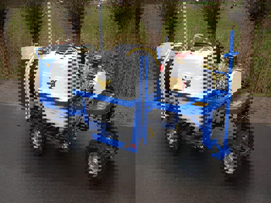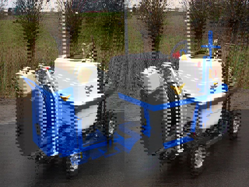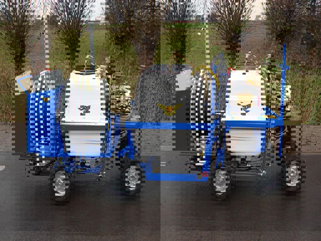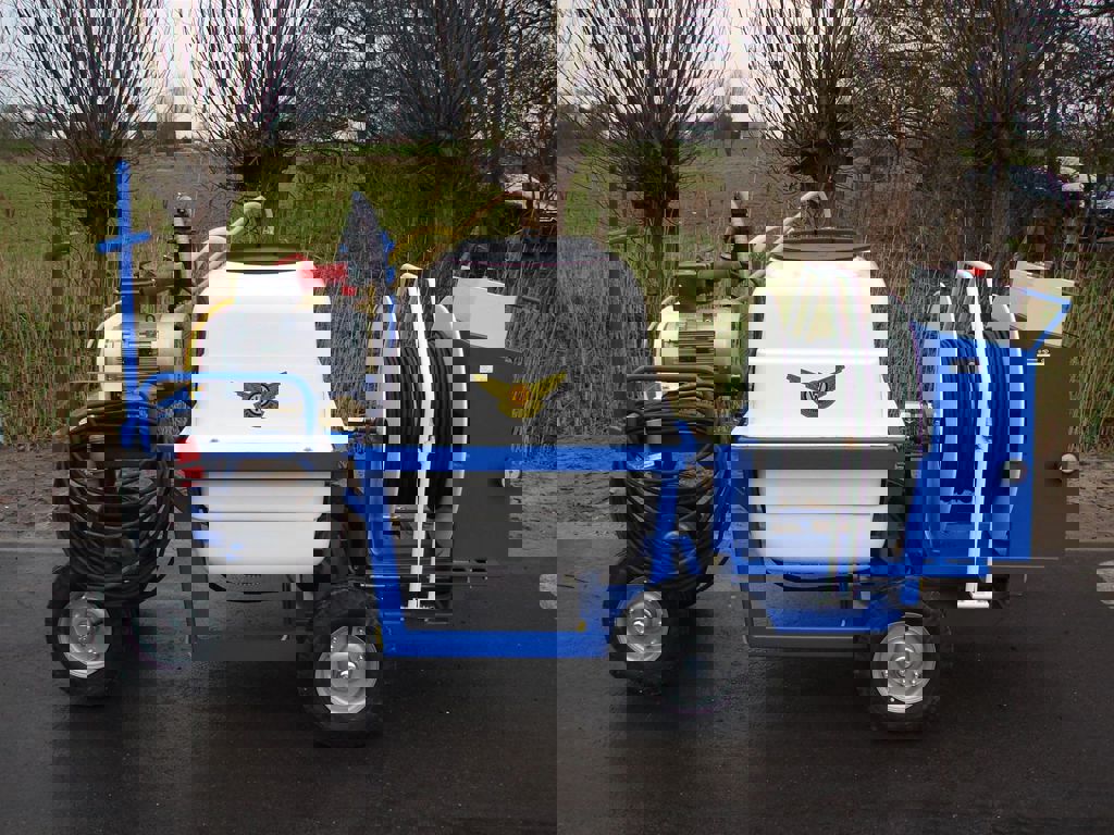 This spray trolley is equipped with an “anti-swirl” filling system and has a filling point at the bottom of the tank to prevent foaming. The cart is equipped with a an electric remote controlled reel for the spraying of plant protection products, or other solvets.