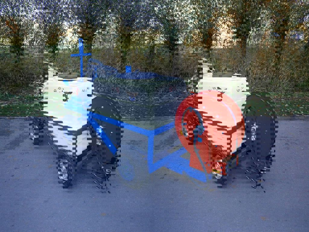 This model is also provided with an rotatable spring operated reel that can be used for spraying of solvets for crop protection. The rotatable reel can be locked in three positions. This allows the hose to be rolled up always at the lowest position, so any damage to the crops will be avoided.