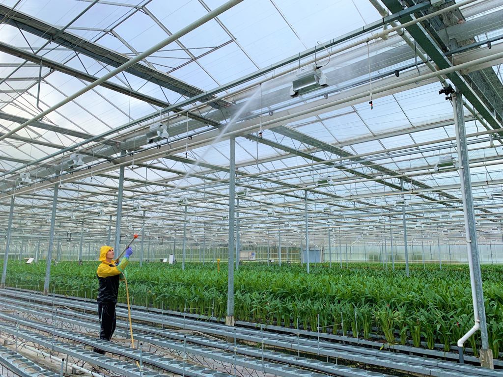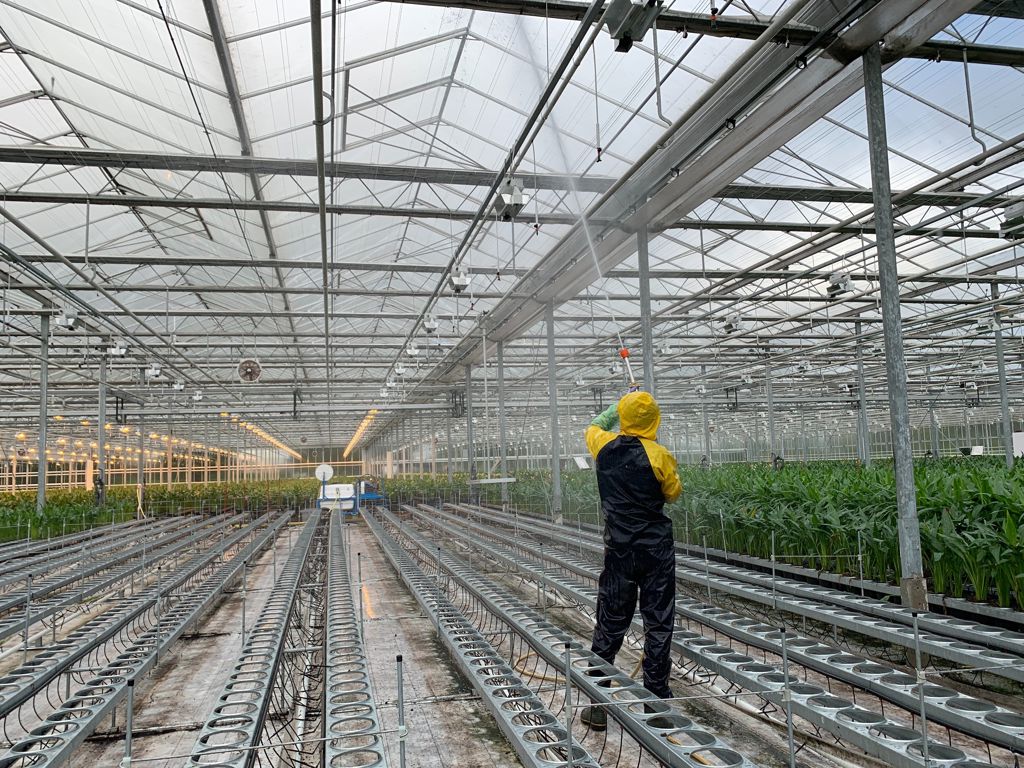 This spraying car is mainly used for cleaning the greenhouse roof and spraying out the glasshouses with clean water. The powerful water jet easily removes moss and other pollution from the glass panes and gutters. The Spray trolley can also be used for spraying crop protection agents.