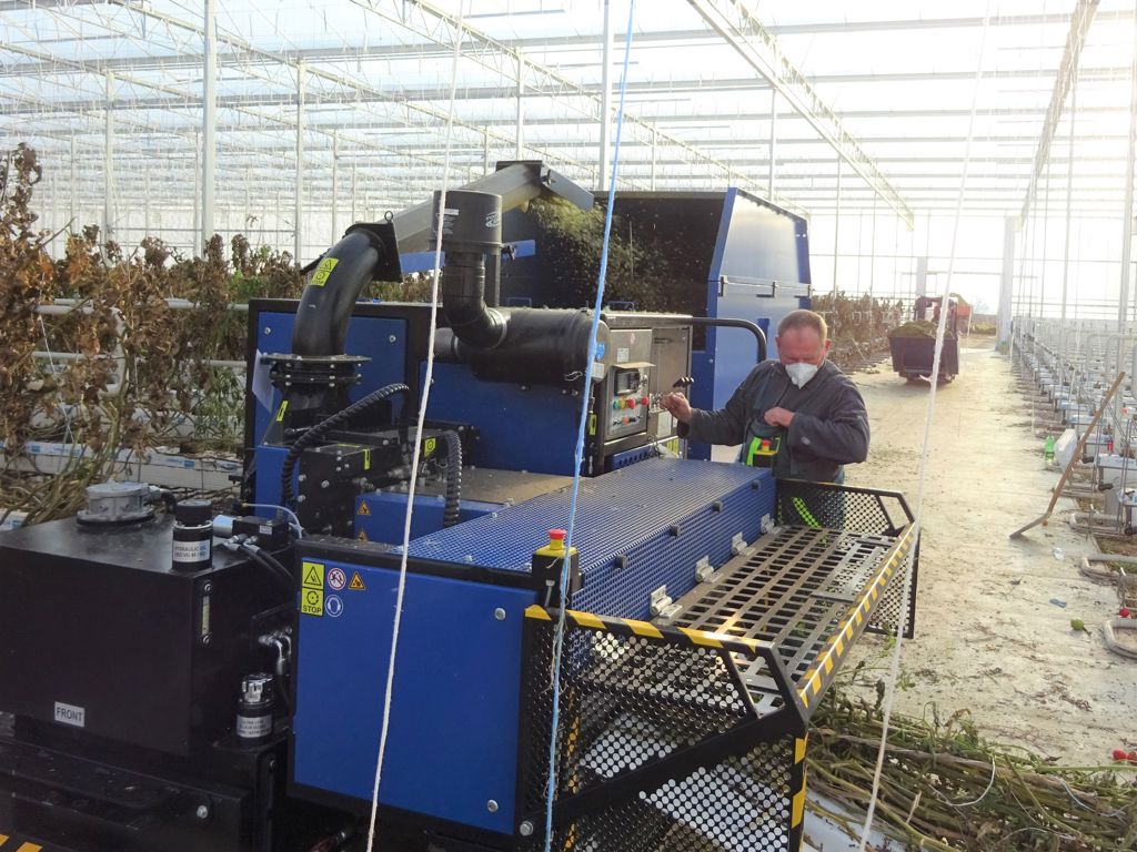 In addition, this crop shredder is suitable for the crop rotation of cucumbers, eggplants, strawberries on coir, raspberries on coir, blueberries, etcetera. The crop volume is reduced to about 20% of the original volume.
