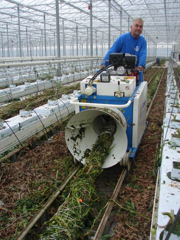 The Super Twister binding machine is designed for binding or twisting tomato plants in horticultural greenhouses. The crop is guided through a drum and wrapped with nylon rope, so that one long string is formed. This string can be rolled up using the Multiroller. The working speed of the Super Twister is about 1.000 m2/hr.