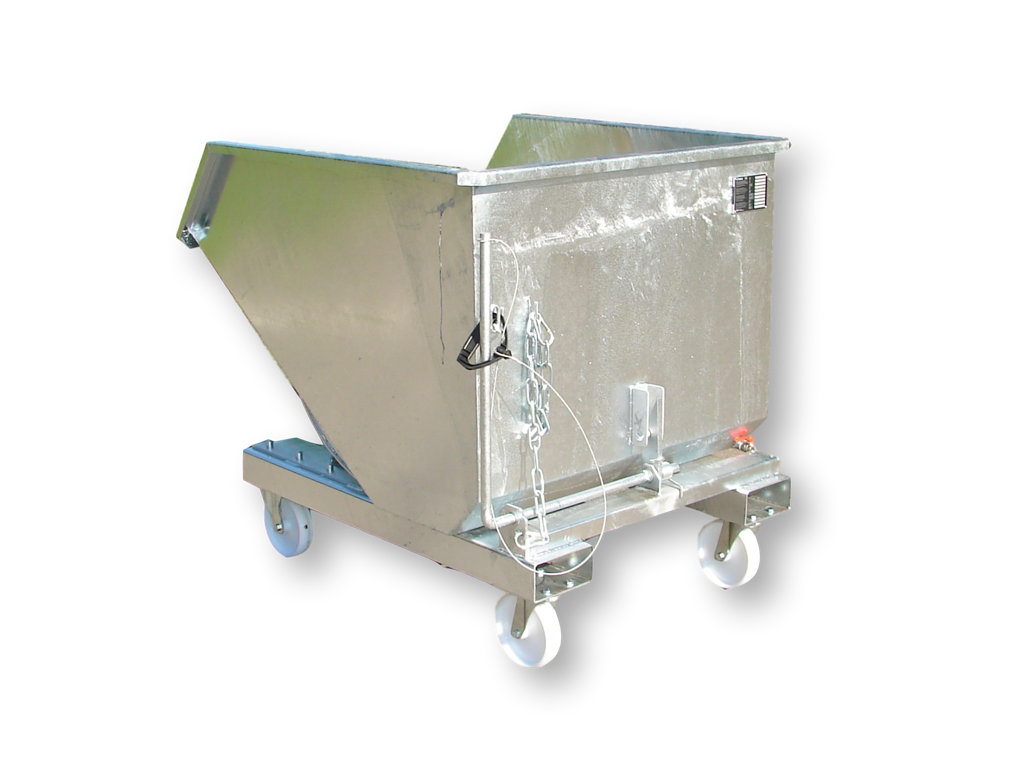 Tipping container grid rack with drain