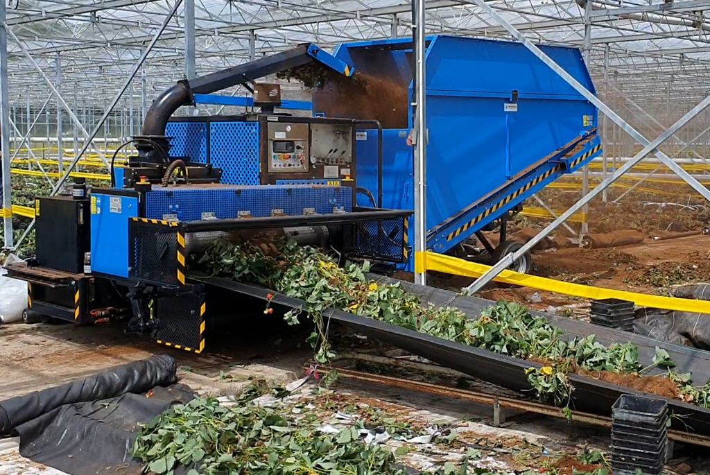 versnipperen, hakselen, versnipperaar, hakselaar, teeltwisselen, teeltwisseling, gewas uitruimen, komkommers, tomaten, paprika, aubergine, rozen, kas uitruimen, tuinbouw, gewasruimer, gewasversnipperaar, heecon, hortibull, hortimat