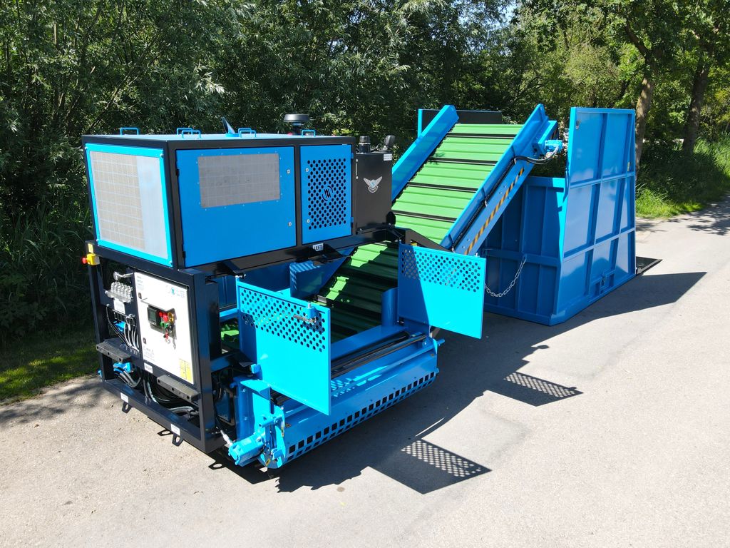 Met behulp van transportmatten wordt het afval naar de Bio Hopper getransporteerd waarna het materiaal middels een opvoerband in een buffer- of kantelcontainer gestort wordt. Bij gebruik van een buffercontainer kan het afval afgevoerd worden middels eenloofriek.