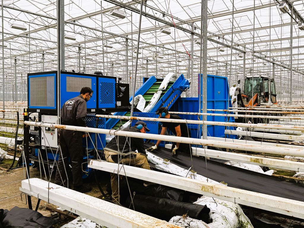 loonwerk machine, tomatenblad, teeltwisseling, gewas ruimen, teelt wisselen, steenwol machine, steenwol verwijderen, uitruimen, uitruim machine, teeltwisselen, blad ruimen