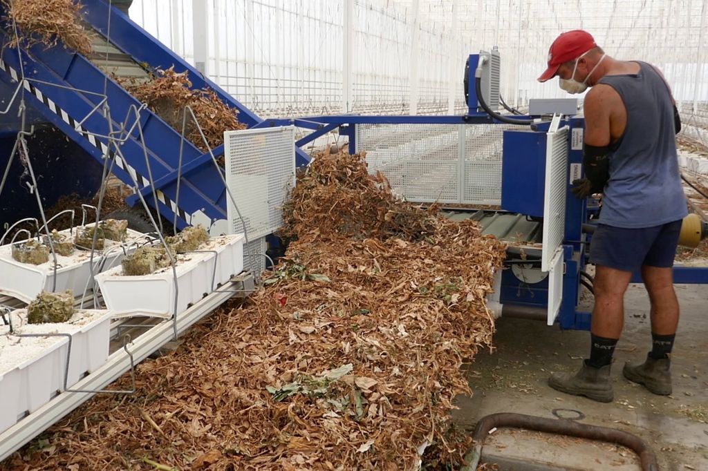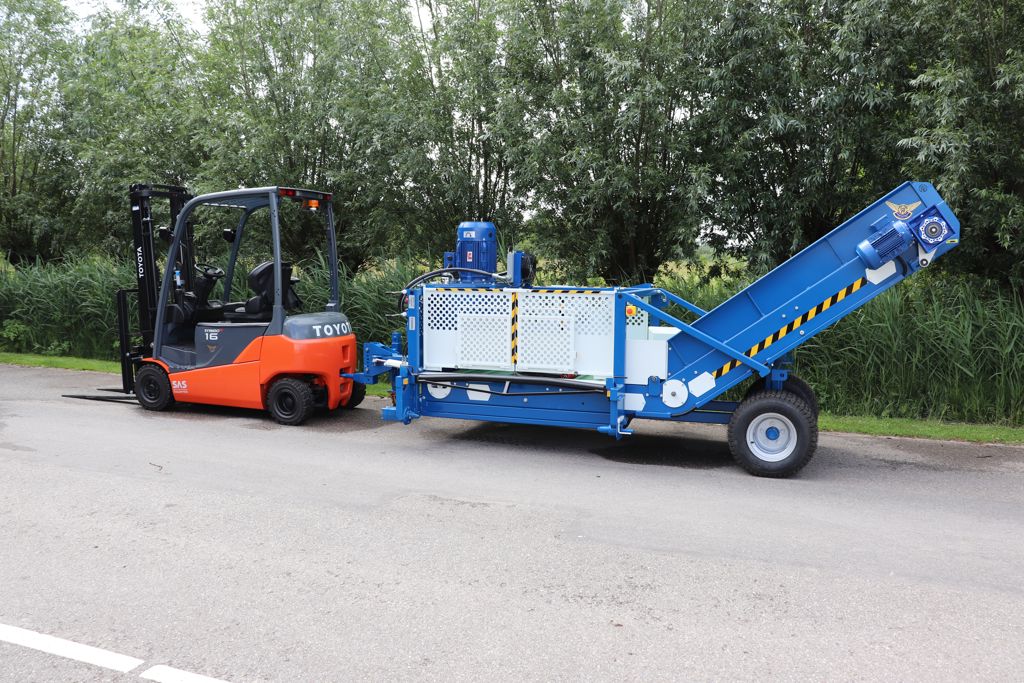 teeltwisseling machine elektrisch, elektrisch kas uitruimen, bio hopper elektrisch, planten ruimen, aardbeien, komkommer, grondfolie, gewas uitruimen, tuinbouw teelt wisselen, opvoerband, loopfolie, steenwol, perliet, kokos, teelt wisseling elektrisch
