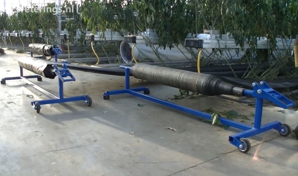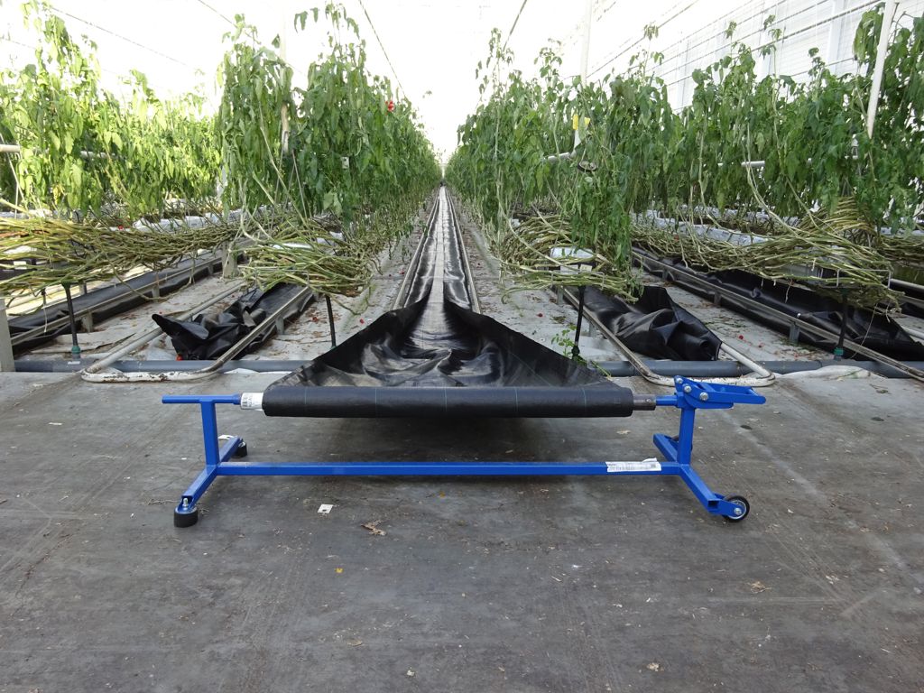 De doekafroller is een eenvoudige en stabiele werktuig om gronddoek of transport matten af te rollen tussen het tuinbouwgewas, onder de teeltgoten of tussen de buisrails. De afroller is voorzien van een borging, waardoor de buis niet uit de afroller kan lopen en men tevens snel en eenvoudig rollen kan wisselen.