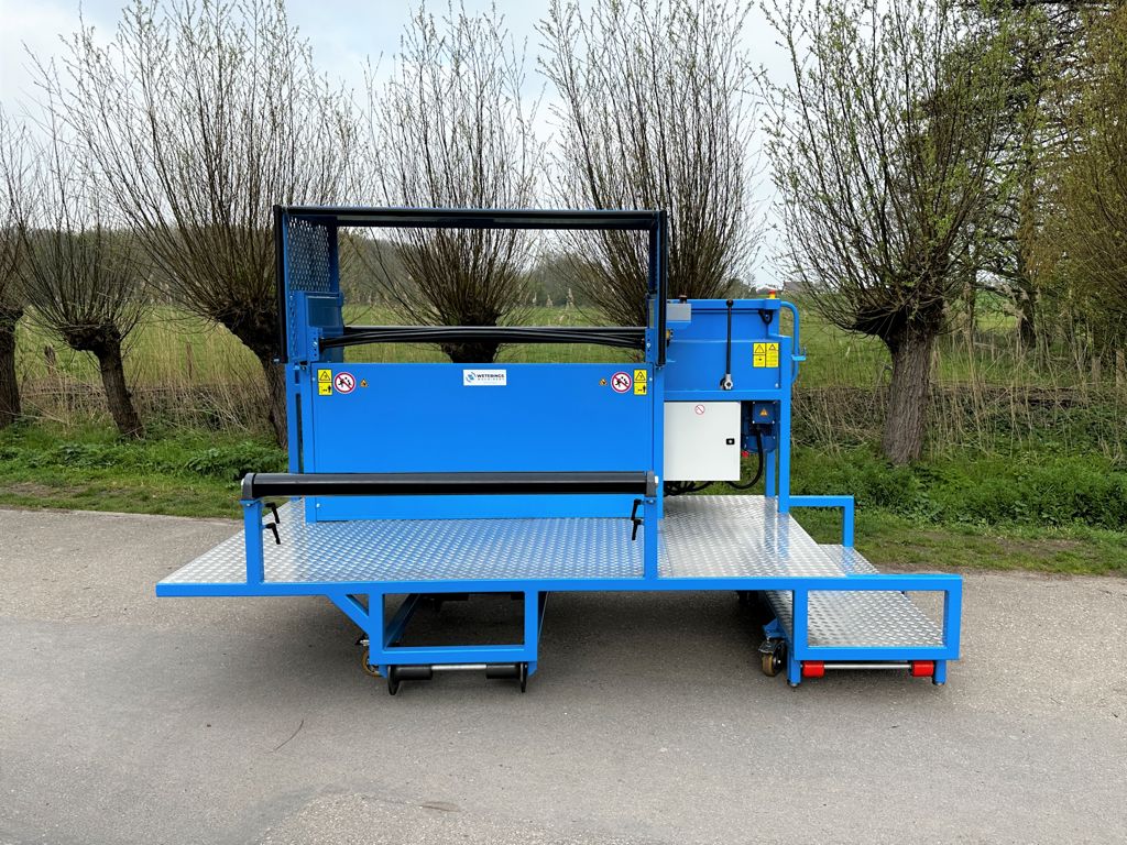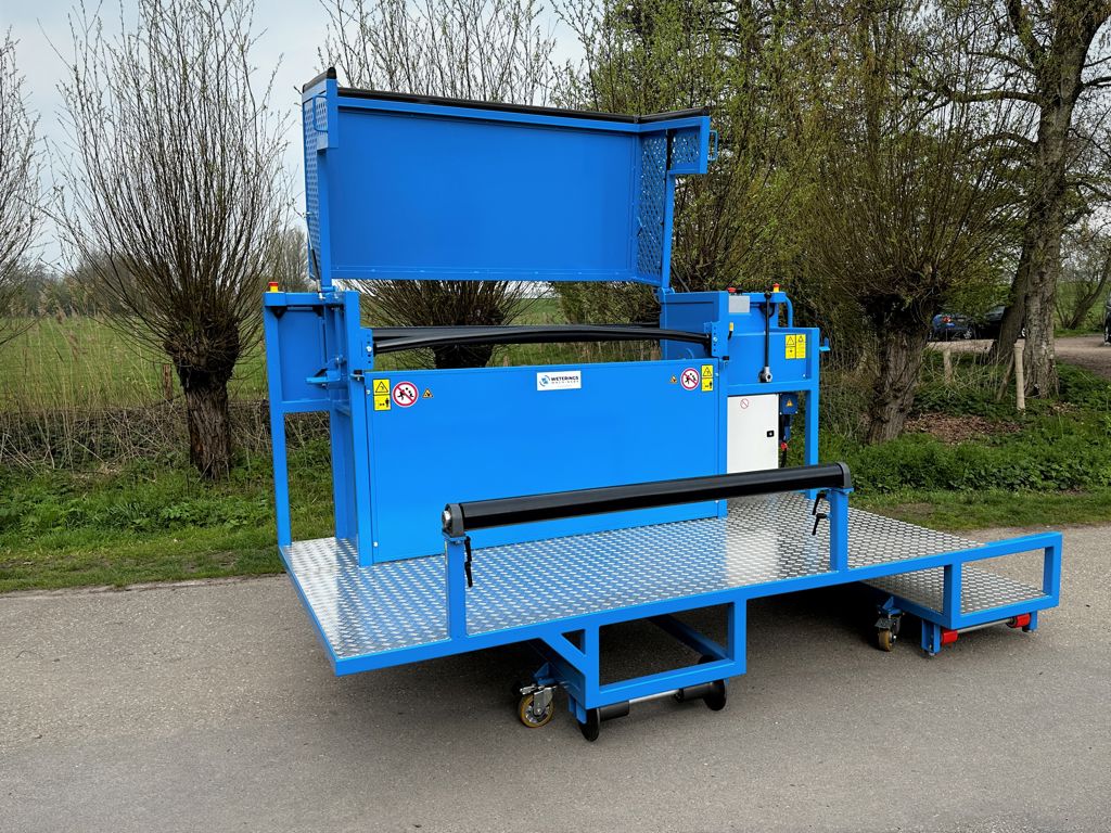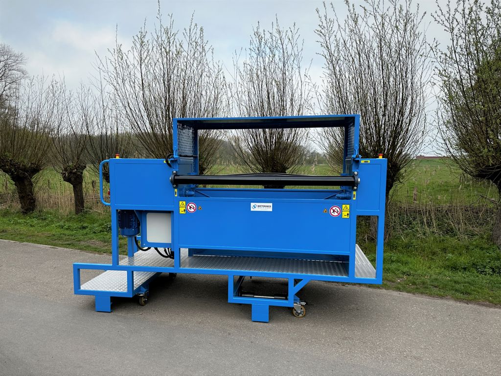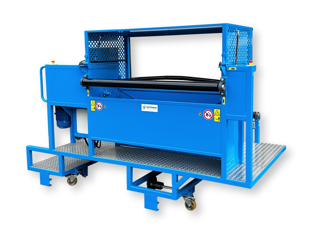 Met deze doekoproller kan men eenvoudig gewassen en substraten uitruimen in compacte teeltsituaties. Deze uitruimmachine wordt op de buisrails geplaatst, waardoor het betonpad vrij is om een afvalcontainer achter de doekoproller te plaatsen. Deze machine wordt ingezet voor het uitruimen van paprika- en auberginegewassen in opkweek kassen.