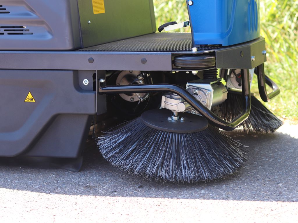 De Gansow 125E veegmachine heeft een totale veegbreedte van 120 cm. Deze veegmachine beschikt over 2 zij borstels zodat aan weerszijde op moeilijke bereikbare plekken geveegd kan worden.