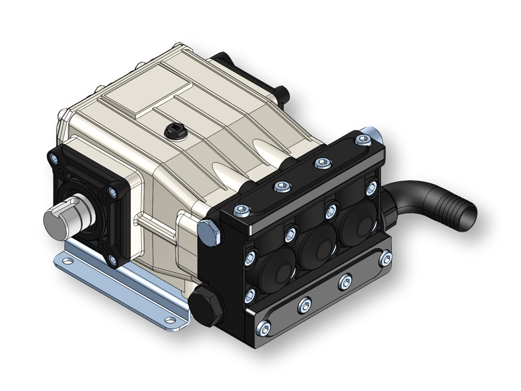 De Imovilli MP63 plunjerpomp is uitgevoerd in 3 plunjers met keramische zuigers met dubbele afdichting. De mechanische delen draaien in een oliebad en zijn volledig gescheiden van het hydraulische gedeelte. Alle ""vochtige"" delen zijn corrosiebestendig geanodiseerd. De pompkoppen zijn aan de zuig- en perszijde met elkaar verbonden.