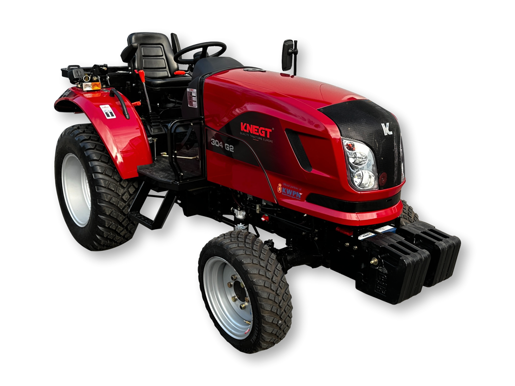 Door zijn 30 pk sterke motor en hoog koppel is deze compact tractor uitstekend te gebruiken voor het zwaardere maai en trekwerk. Zo kan men met deze 304 G2 maaien tot een werkbreedte van 150 cm en makkelijk een brede bodemvlakker voorttrekken. Met een kleine draaicirkel van 6,5 meter en vierwielaandrijving kan met ook op de kleinere rijbakken goed uit de voeten. Ondanks zijn korte wielbasis kan deze Knegt tractor achter op de kogel 700 KG heffen en vóór 500 KG*.