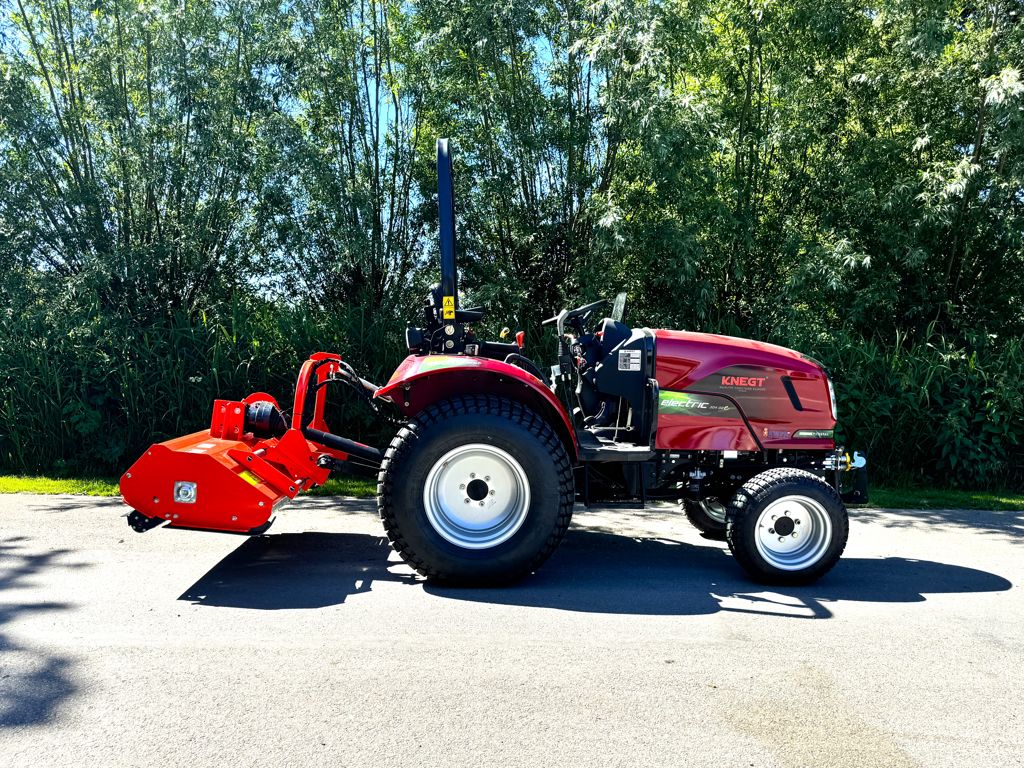 De tractor kan met een kleine draaicirkel van 2.3 meter en vierwielaandrijving ook op de kleinere rijbakken goed uit de voeten. Ondanks zijn korte wielbasis kan deze Knegt tractor achter op de kogel 700 KG heffen.