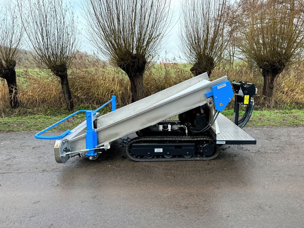 De proportionele hydraulische bediening zorgt voor een soepele bediening van deze oogstmachine. Middels de compacte afmetingen en rupsaandrijving kan men eenvoudig in krappe ruimen manouevreren.