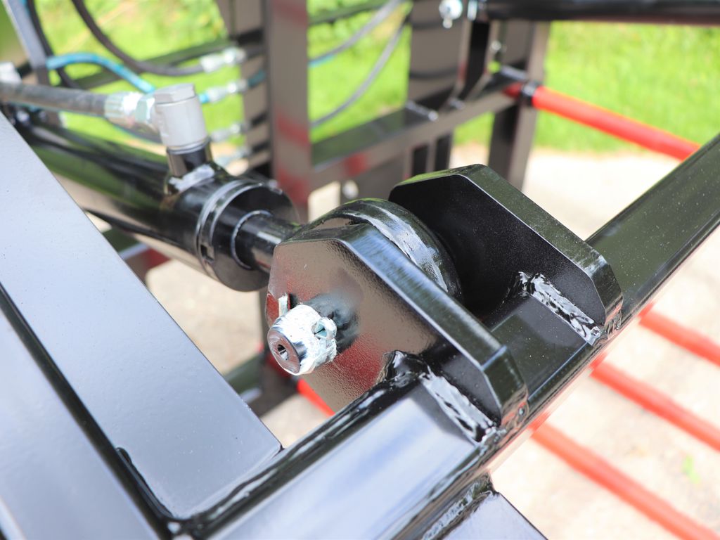 Middels een hydraulisch bediende topstang wordt de loofklem in de driepuntsophanging van een traktor een zeer flexibele oplossing.
