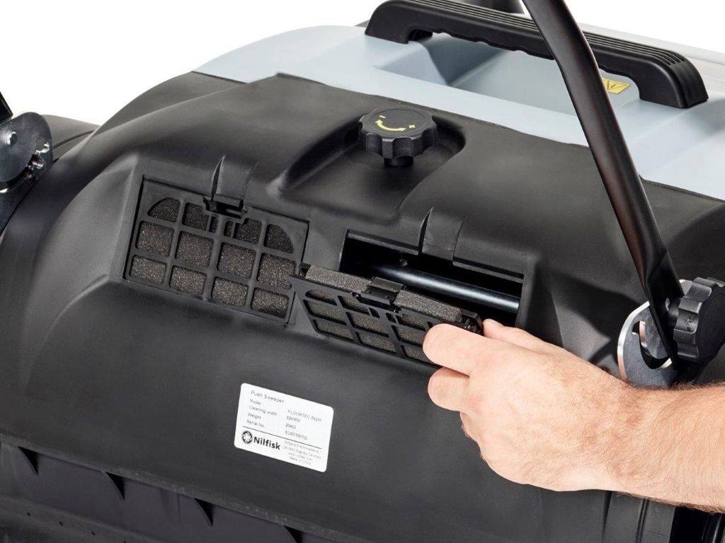 De Nilfisk SW200 is een handbediende veegmachine en ideaal voor de verwijdering van losliggende vuil in krappe ruimtes.