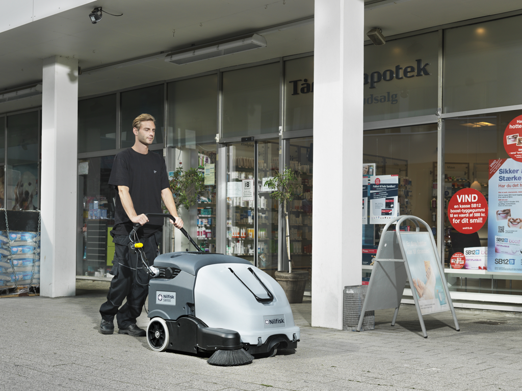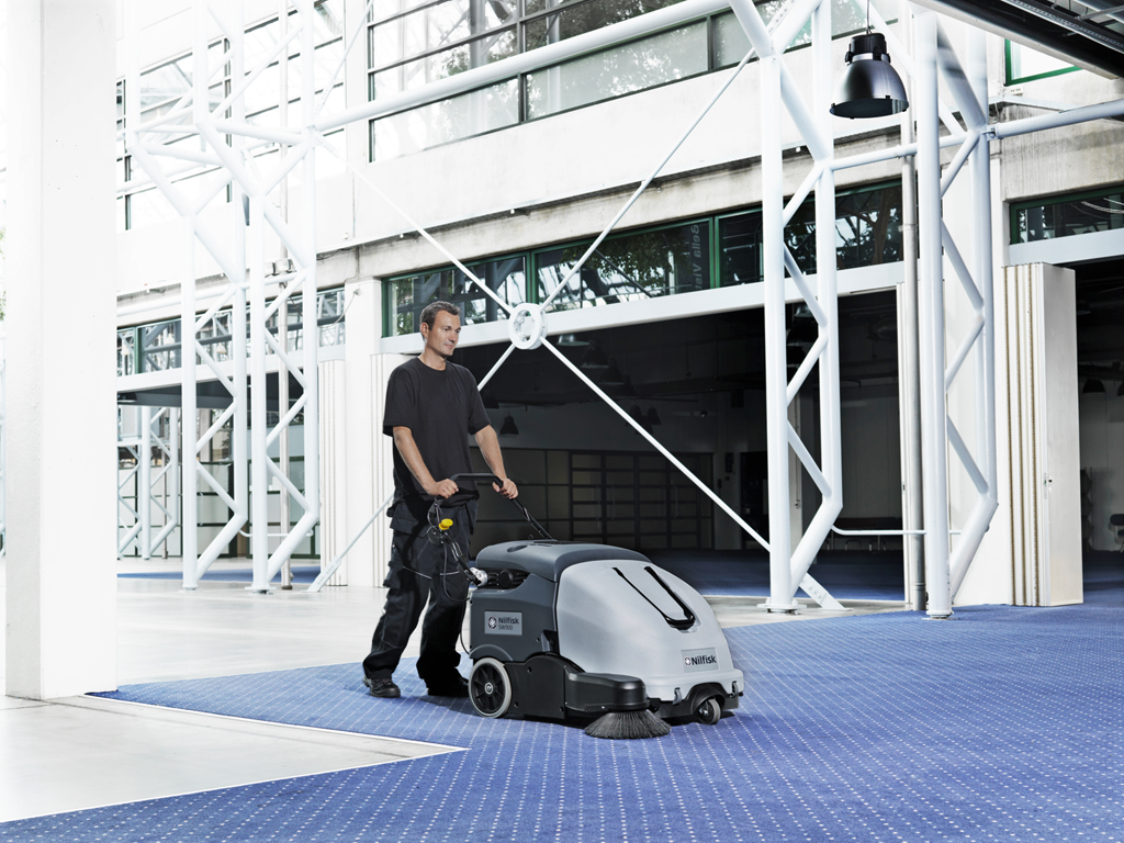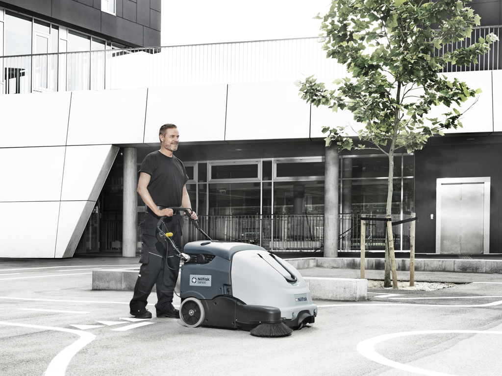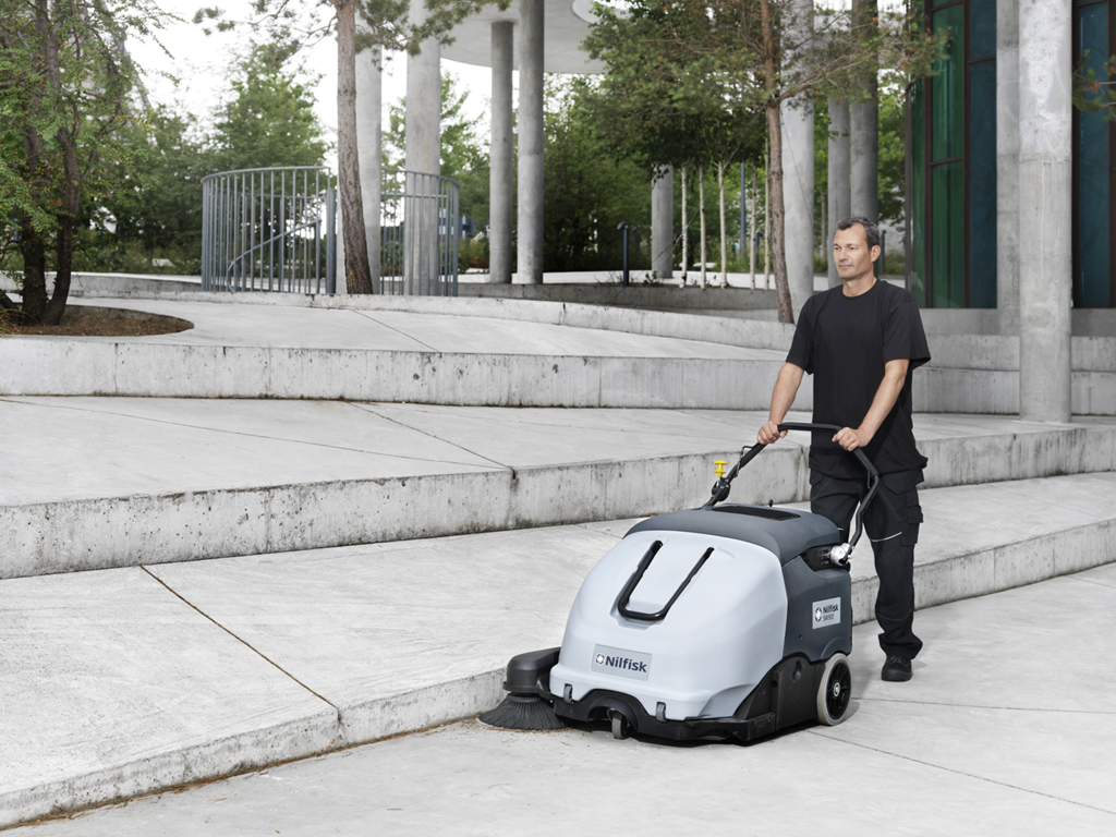 De Nilfisk SW900 achterloop veegmachine kan zowel binnen als buiten worden gebruikt voor stofvrij vegen. De dagelijkse productiviteit zal toenemen door nieuwe belangrijke voordelen: volledige controle voor de gebruiker, verbeterde ergonomie waaronder een vuilcontainer met wielen en betere reinigingsprestaties.