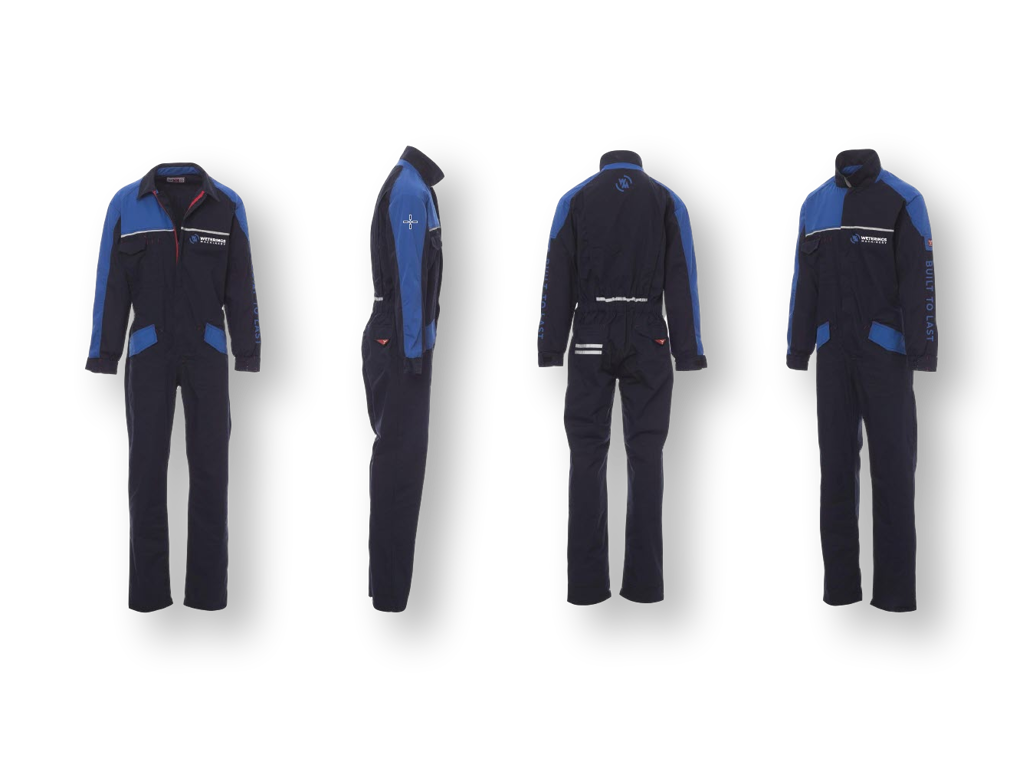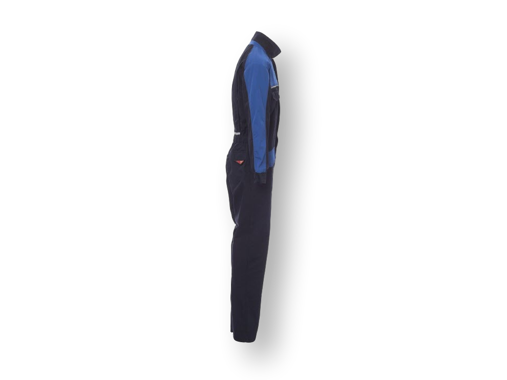 Overall in twee kleuren, voorsluiting met rits, elastische manchetten en sluiting van manchetten met knoop, twee zakken voor met het LOCK SYSTEM met verstevigde onderkant, een ruime multifunctionele borstzak, zak voor smartphone en uitvouwbare badgehouder, twee zakken achter, een met klep en een met twee reflecterende strepen, reflecterend pipingband op de borst en rug, elastische, geplooide rug voor meer bewegingsvrijheid.xx