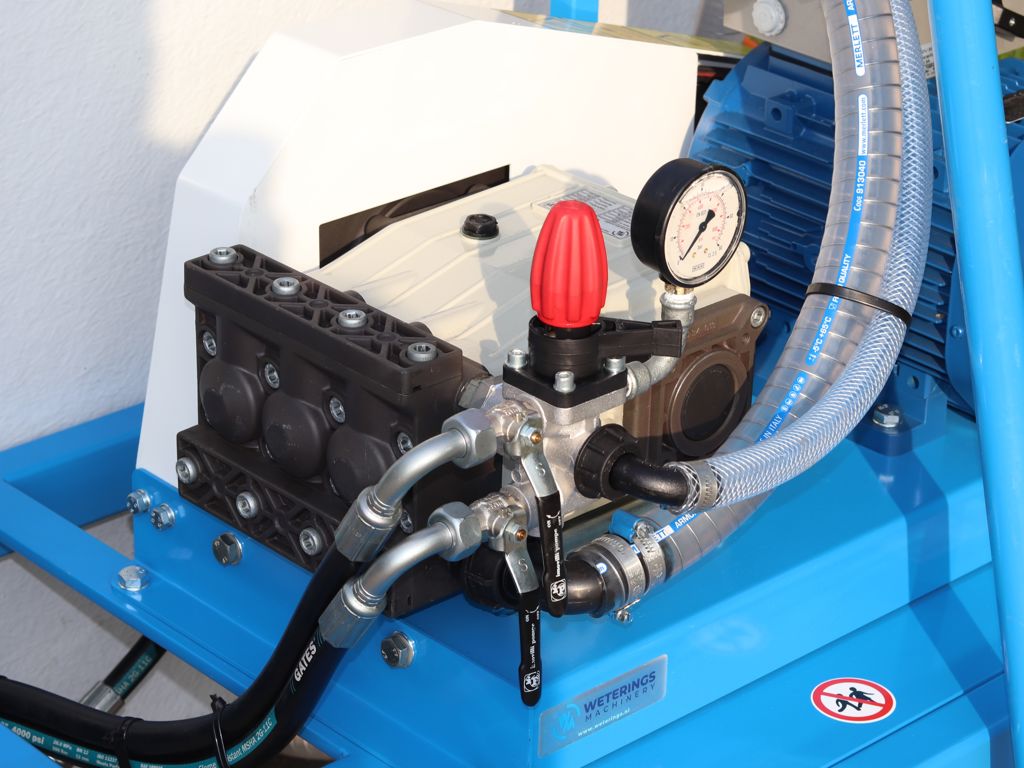 De Imovilli P63 plunjer pomp is zeer geschikt voor het verpompen van gewasbeschermingmiddelen. Daarnaast is de plunjerpomp ook geschikt voor het verpompen van sloot- en oppervlaktewater. De 4kW/400V pompmotor is uitgevoerd met een sterdriehoek schakelaar. De pomp wordt aangedreven middels een v-snaar overbrenging.