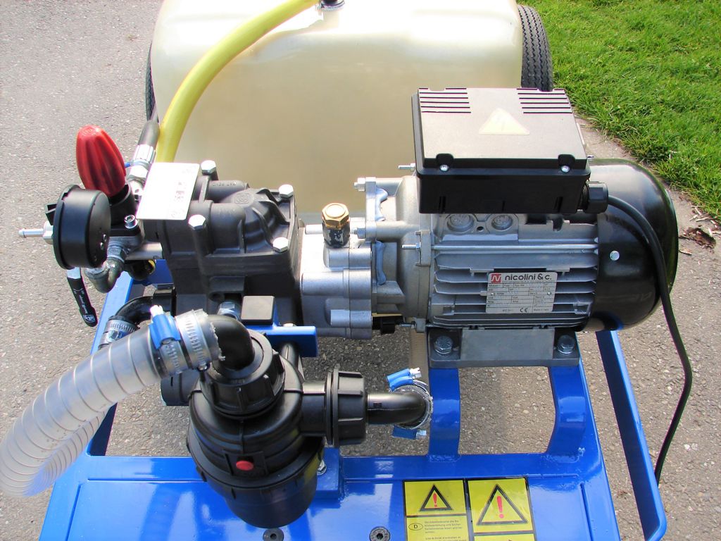 Deze compacte motorvatspuit is voorzien van een robuuste plunjerpomp met keramische zuigers, waardoor deze pompwagen zeer geschikt is voor het spuiten van gewasbeschermingsmiddelen. De tank is voorzien van een anti-kolk inlaat waarmee de tank van onderaf gevuld kan worden om schuimvorming in de tank te voorkomen. Deze spuitwagen kan optioneel voorzien worden van een hand- of veerhaspel.