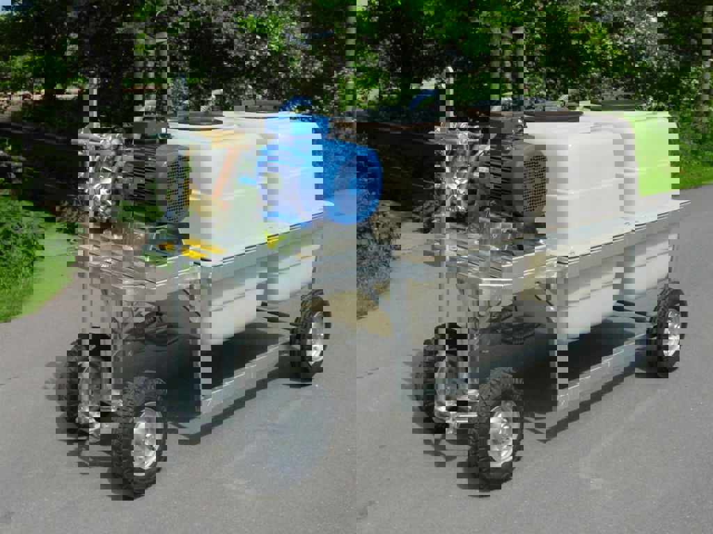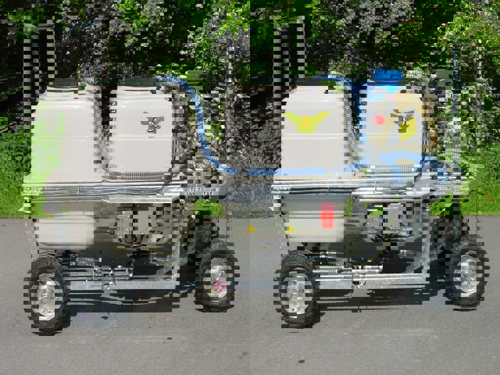 Deze spuitwagen is voorzien van 2 verschillende compartimenten hierdoor kunnen er 2 soorten bestrijdingsmiddelen mee gespoten worden (rem en groeimiddelen).