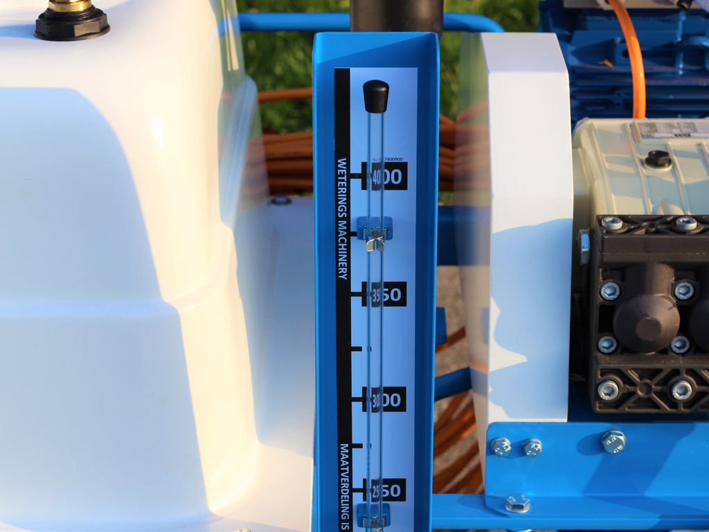 Deze wagen is uitgerust met anti-kolk inlaat, roerinjecteur, peilglas, parkeerrem, snoerbeugel, snoergeleider en extern zuigfilter boven vloeistofniveau. De tank kan van onder gevuld worden om schuimvorming in de tank te voorkomen.