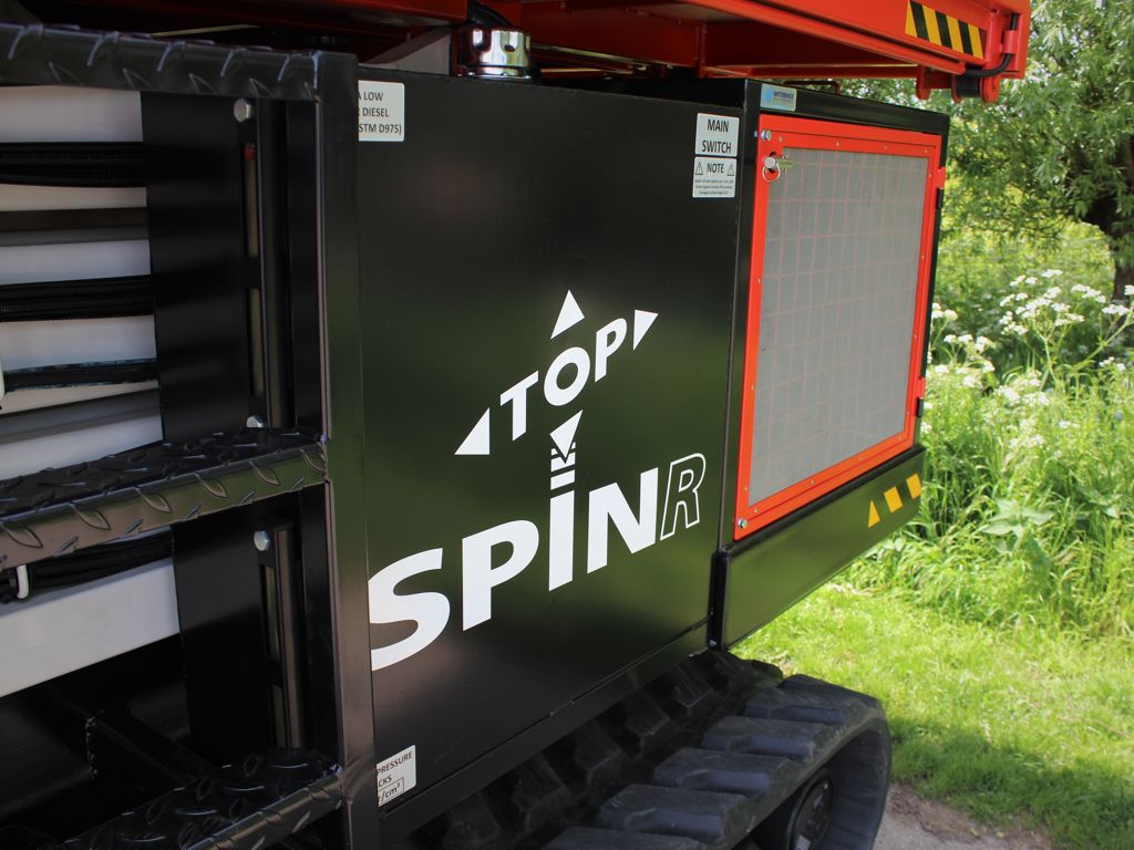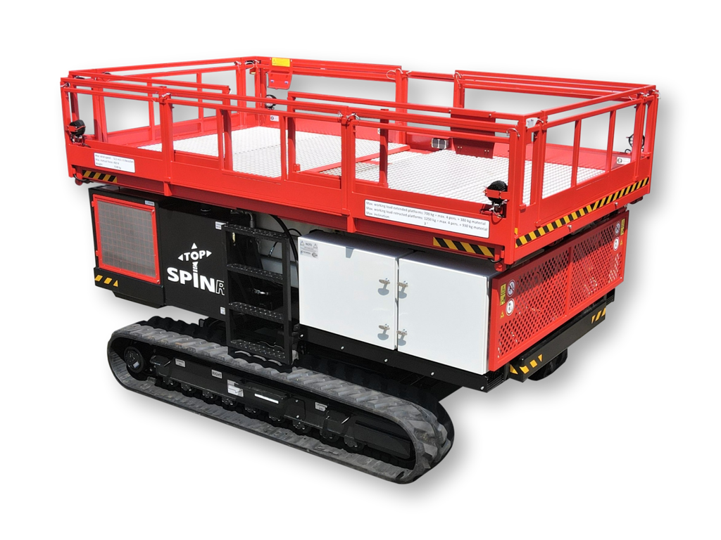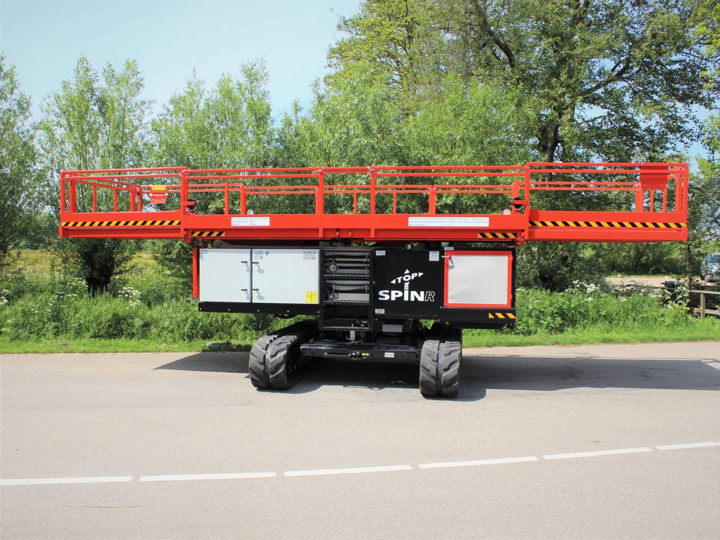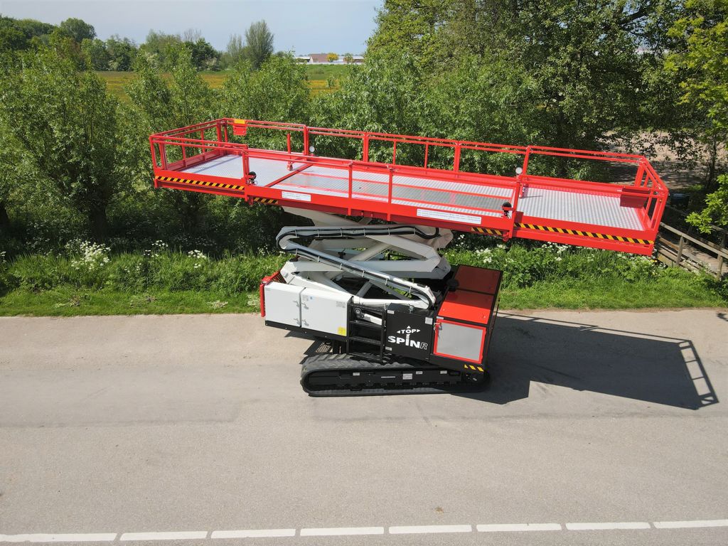 De Weterings Top Spin R schaarhoogwerker is de ultieme machine voor het installeren van scherming-, luchting-, belichting- en verwarmingsytemen in kassen. De Top Spin R is al meer dan 15 jaar een begrip in de kassenbouw. De basis van het succes ligt in het draaibare werkplatform, de hoge stabiliteit, de compacte afmetingen en de ongeëvenaarde kwaliteit van de machine.